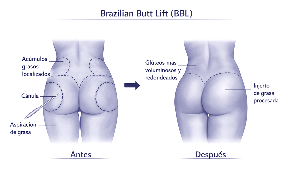 Mejora el volumen y la forma de los glúteos con grasa propia.